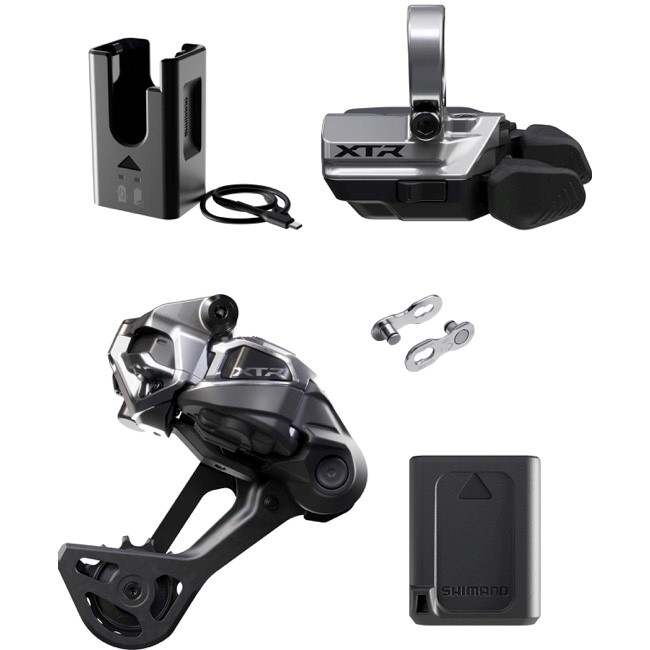 Shimano XTR Di2 upgrade kit 1x12 s bezdrátovým ovládáním nabízí bleskově rychlé, extrémně přesné řazení s maximální odolností pro závodní nasazení. Díky nové technologii SHADOW ES je přehazovačka RD-M9250-SGS nízkoprofilová, pevná a připravená zvládnout XC závody i ty nejtěžší traily.