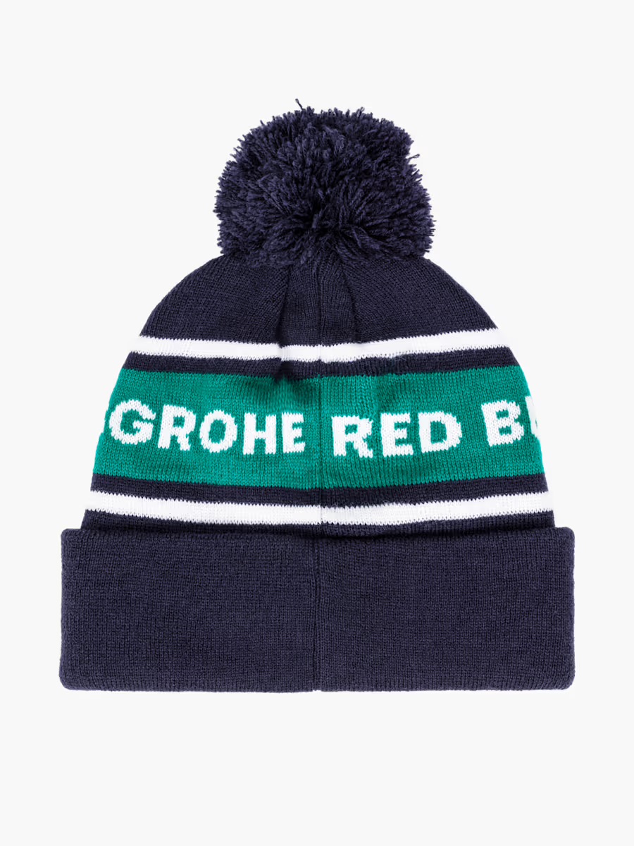 Zahřejte se v chladnějších dnech v této útulné a stylové čepici Red Bull - BORA - hansgrohe s bambulkami v barvách týmu.